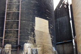 カビが発生している建物外壁、タンクを試験施工しました。 |